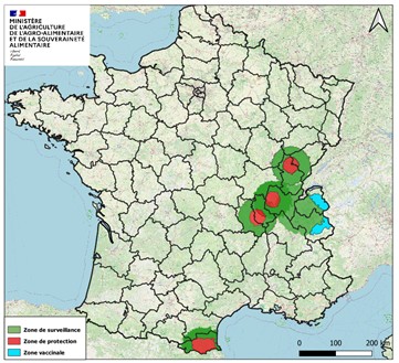 La confirmation de 7 nouveaux foyers depuis une semaine (11/10/2025) en France (un foyer dans l’Ain, trois foyers dans le Jura et trois foyers en Occitanie) a conduit Annie Genevard à réunir en urgence le Parlement du sanitaire vendredi 17/10/2025 et à prendre des mesures renforcées sur les mouvements de bovins.